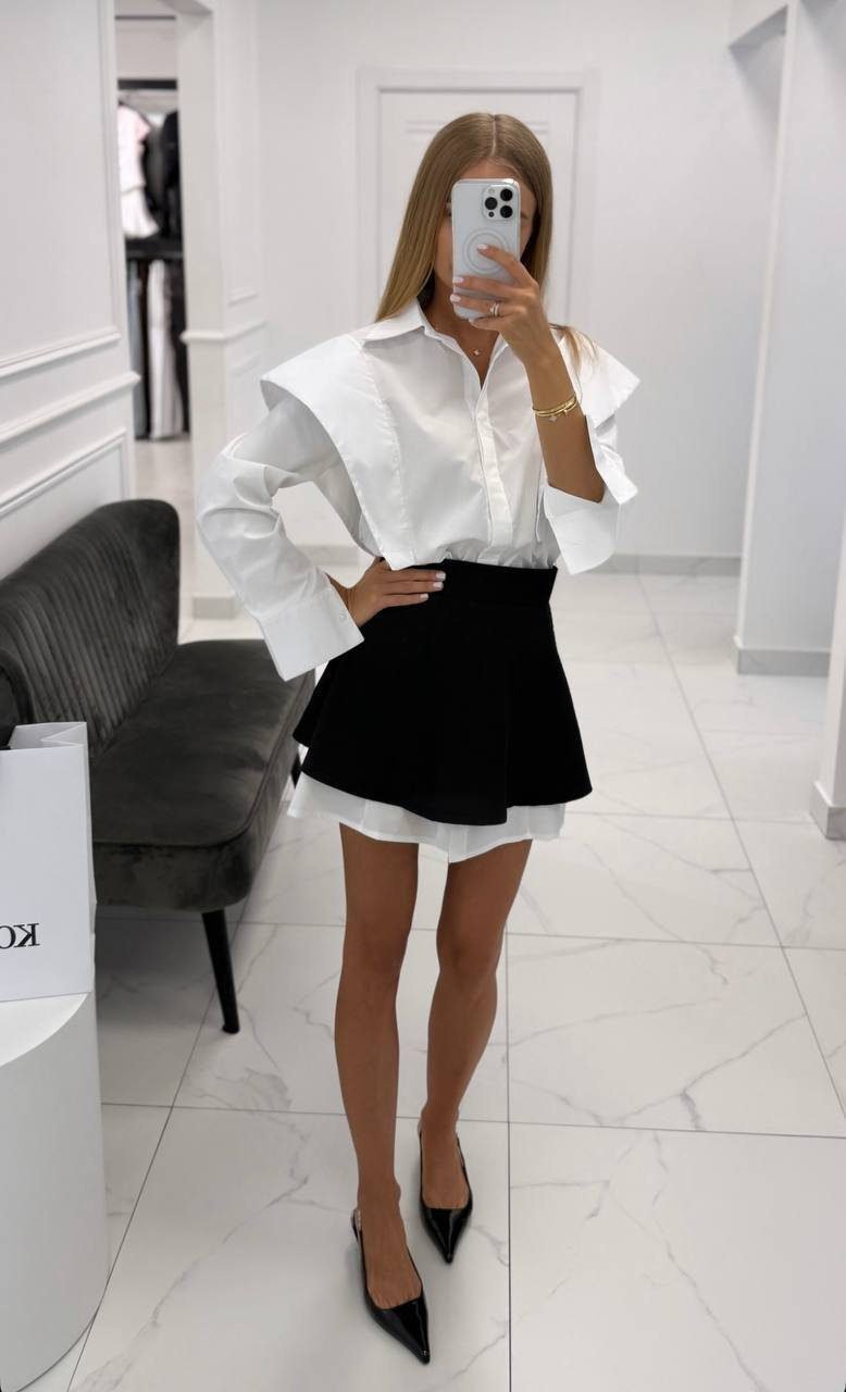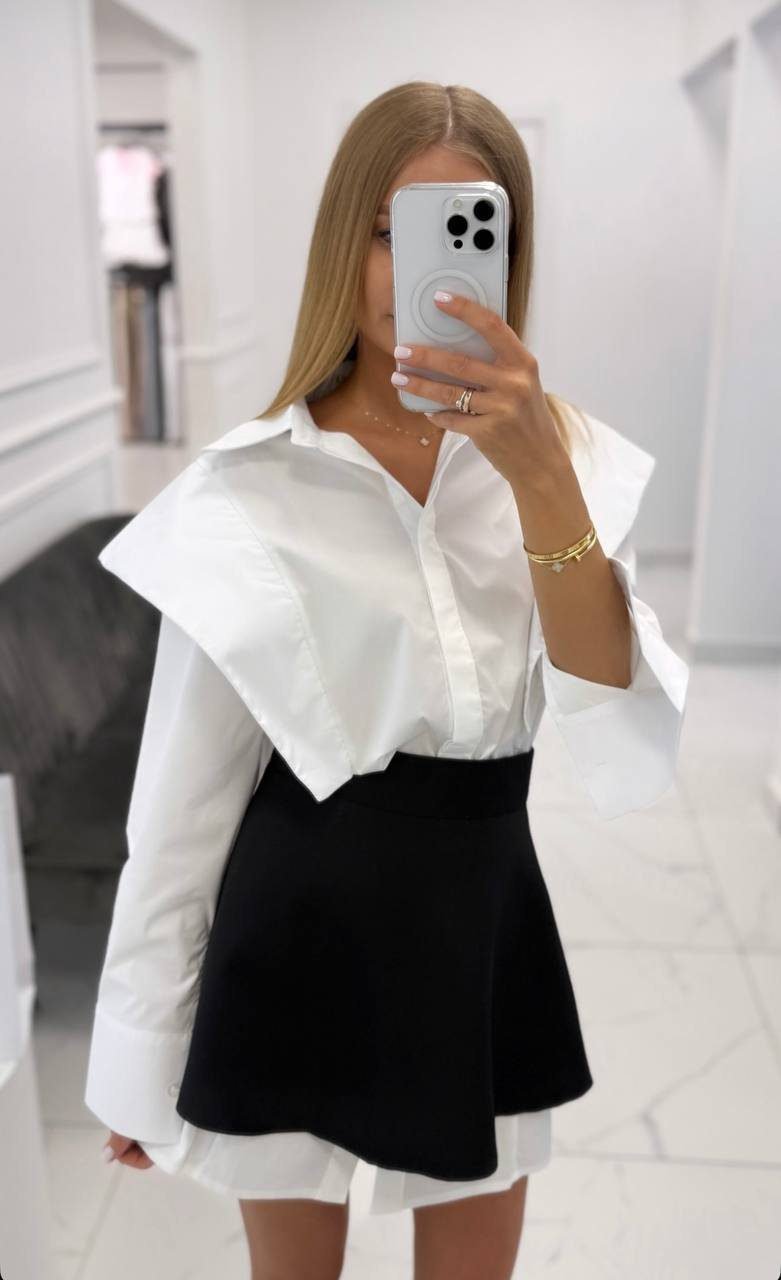 Dviejų dalių komplektas kurį sudaro marškiniai ir sijonas.